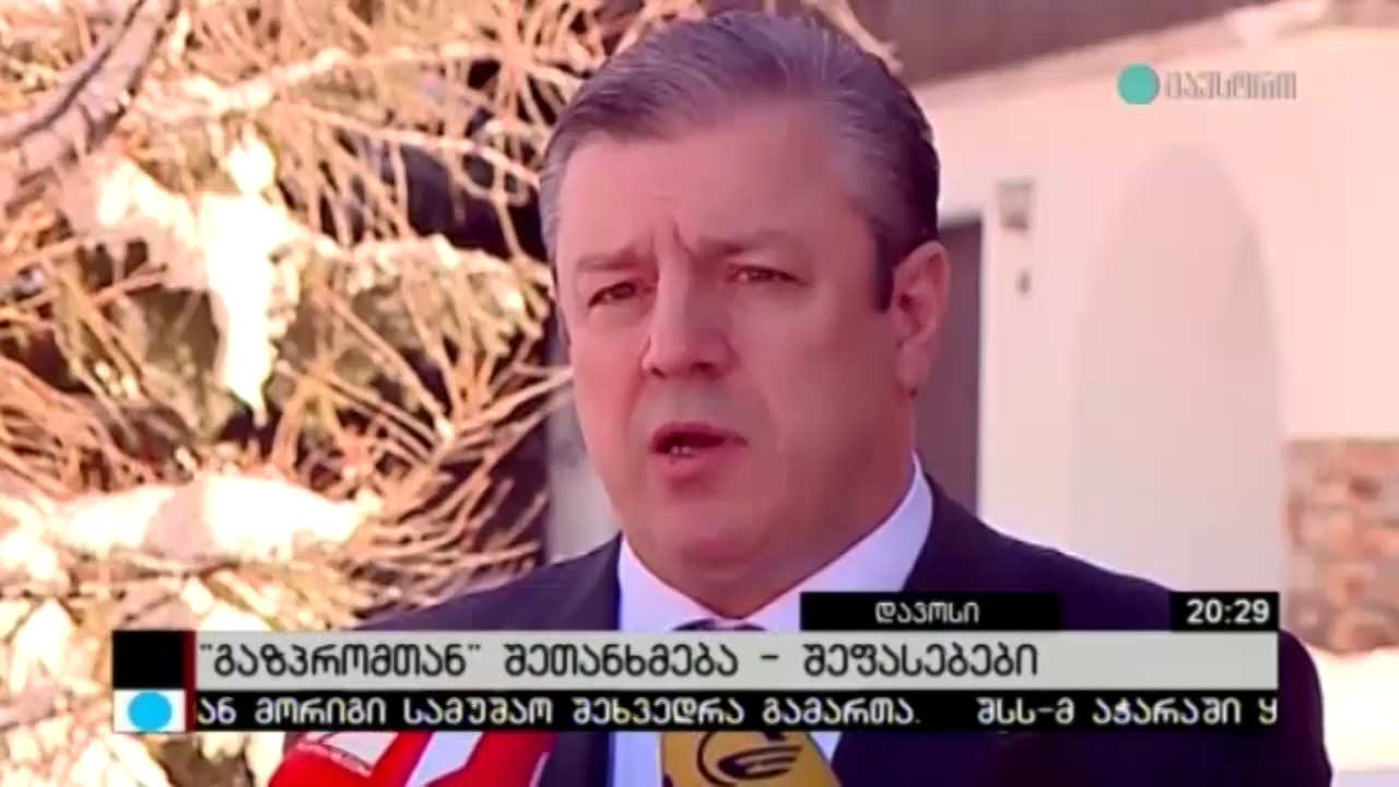 და მოცემულობაში, რომელშიც ქვეყანა იმყოფება, საქართველომ დაიცვა ქვეყნის ინტერესი და მიაღწია იმ მაქსიმალურ შედეგს, რისი მიღწევაც იყო შესაძლებელი,- ამის შესახებ საქართველოს პრემიერ-მინისტრმა ჟურნალისტებს კომპანია “გაზპრომთან” გაფორმებულ ხელშეკრულებასთან დაკავშირებით თემის კომენტირებისას განუცხადა.